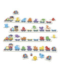 Players fill their train by rolling the dice and matching the coloured animals and carriages, creating a vibrant train of learning and laughter. Designed with chunky, wipe-clean cards that are perfect for little hands.